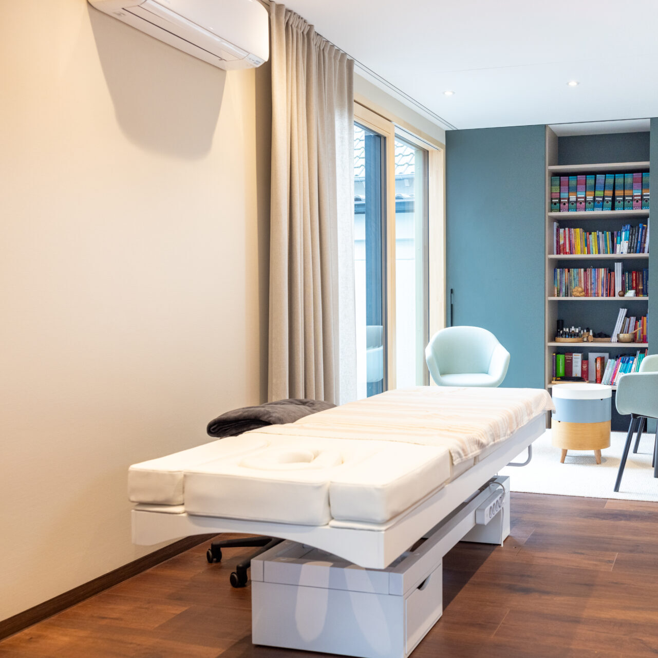 Das komplett mit Zirbenholz ausgekleidete Schlafzimmer ruft einen beruhigenderen Schlaf (wissenschaftlich bewiesen) hervor. Zusätzlich kann der Raum dank der Klappfunktion des Betts als nutzungsneutrale Fläche, Sport- und Ruheraum genutzt werden.